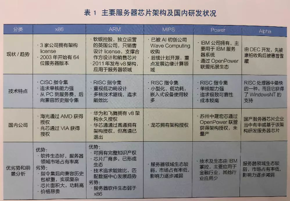 中游IT基礎(chǔ)設(shè)備部分,以服務(wù)器好存儲為例,國內(nèi)廠商大力投入研發(fā)資源,當(dāng)前,除核心芯片外,我國服務(wù)器零部件國產(chǎn)化率已經(jīng)超過60%。但是當(dāng)前的主要瓶頸,還是無論在服務(wù)器、存儲還是網(wǎng)絡(luò)設(shè)備領(lǐng)域,X86架構(gòu)芯片都占據(jù)較大的市場份額。我國云計算IT基礎(chǔ)設(shè)備廠商在積極研發(fā)自主可控的非X86架構(gòu)芯片,目前應(yīng)用較多的是基于ARM架構(gòu)的華為鯤鵬芯片泰山服務(wù)器、基于天津飛騰芯片的服務(wù)器。
